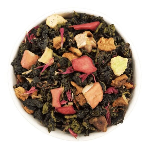 Wat de Vlierbloesem Citroen Oolong thee zo bijzonder maakt, is de harmonie van ingrediënten die zich vermengen met de rijke, diepe smaak van Oolong. Appel voegt een subtiele zoetheid toe aan de melange, wat zorgt voor een frisse, fruitige ondertoon. De appel geeft ook een aangename lichtzure toets die de diepte van de Oolong aanvult.