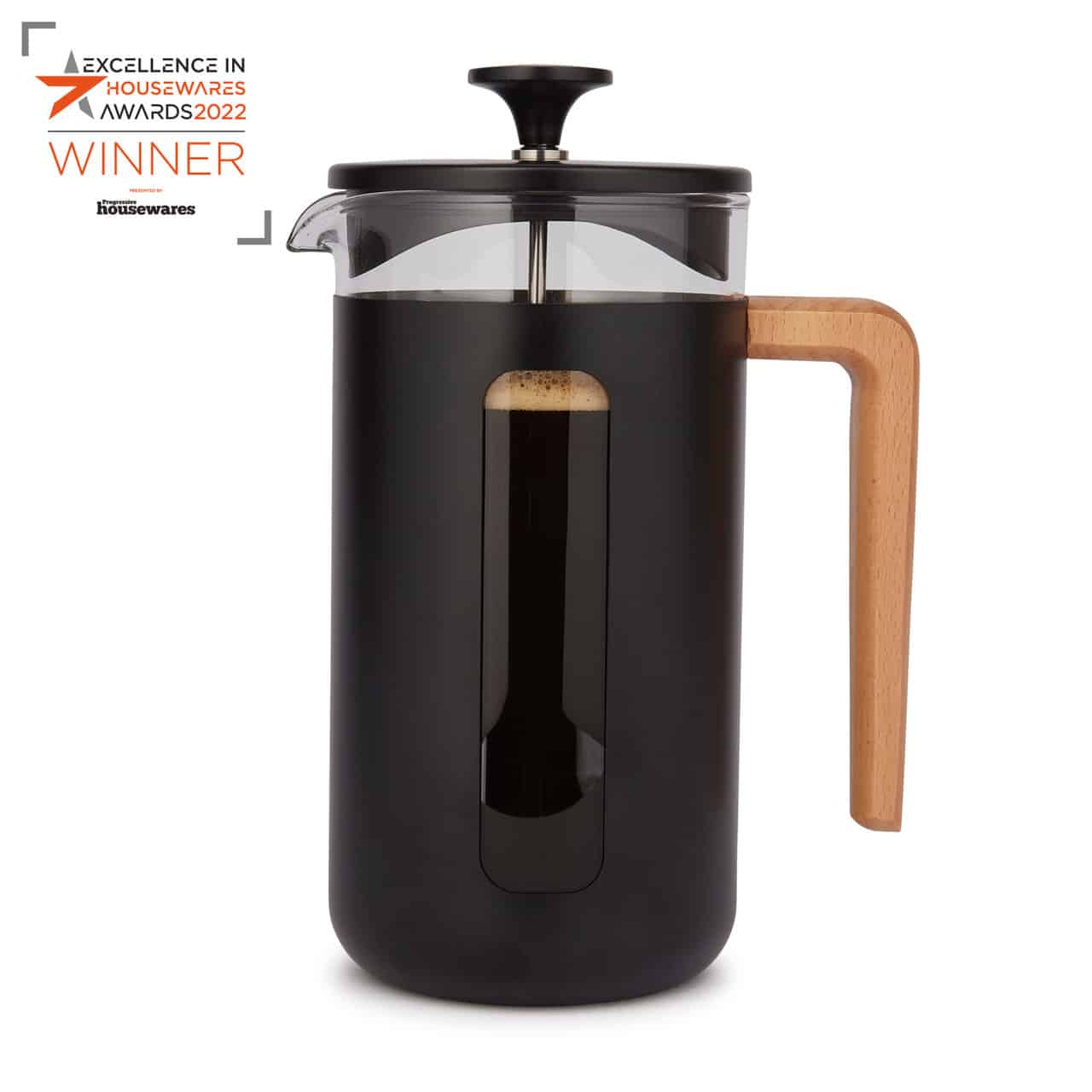 Deze cafetière is gemaakt van duurzaam, hoogwaardig roestvrij staal en is meer dan alleen een werkpaard. Het opvallende kenmerk is de prachtige handgreep van natuurlijk hout, een visueel opvallend contrast dat de aandacht trekt en een comfortabele, stevige grip biedt voor gemakkelijk en knoeivrij schenken. Gebruik grof gemalen koffie en circa 90-95 graden heet water. Laat het geheel 4 minuten trekken en duw dan gelijkmatig de filter omlaag.