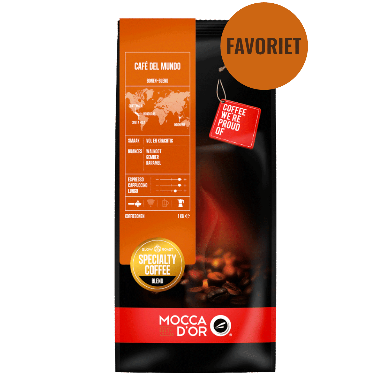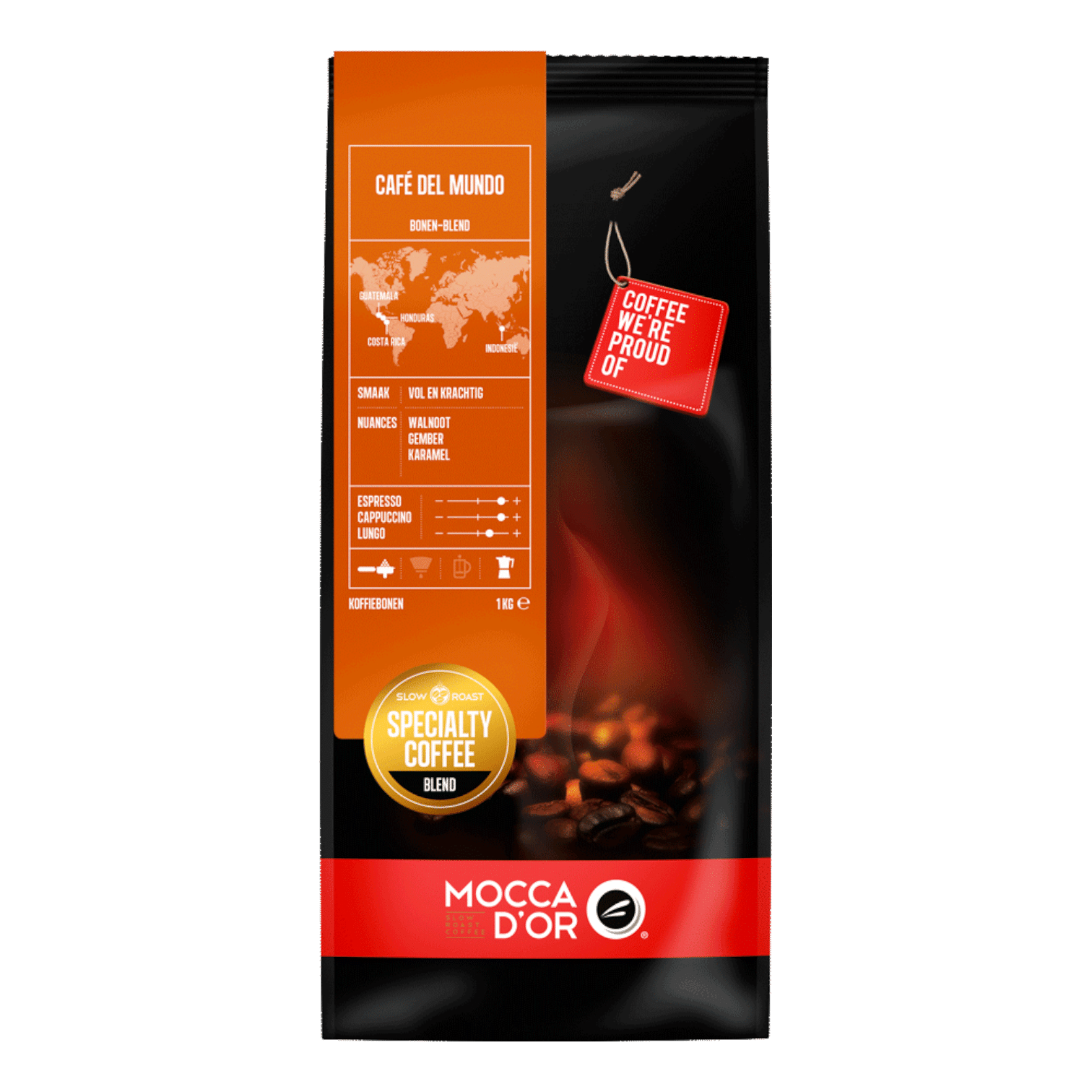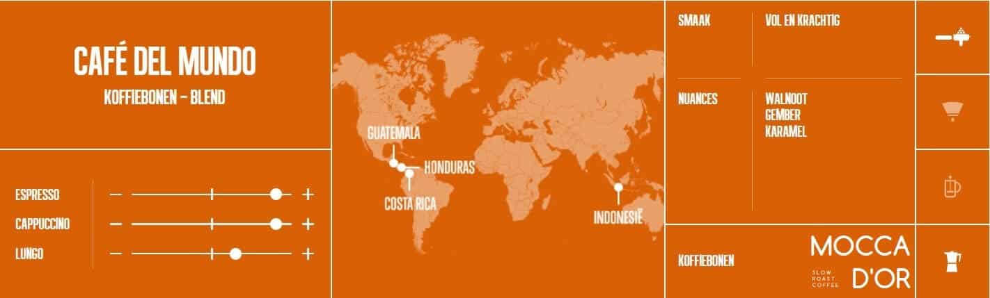 Café del Mundo is een absolute topper in ons assortiment! Een krachtige espressomelange met een uitgesproken karakter en een geweldige body. Deze melange bestaat uit koffiesoorten die afkomstig uit onder andere Guatemala, Honduras en Costa Rica.