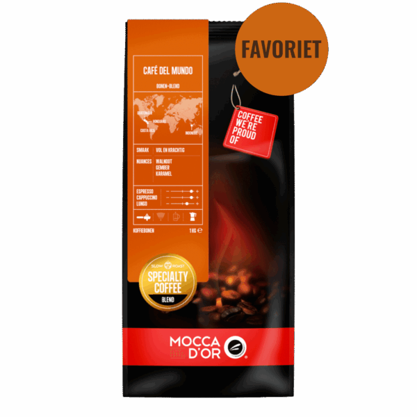 Met Mocca d’Or Café Del Mundo 250gr koffiebonen geniet je van een premium koffie-ervaring. De combinatie van hoogwaardige bonen uit diverse landen, de zorgvuldige brandmethode en de mogelijkheid om de koffie aan te passen aan jouw voorkeur en zetmethode, maakt deze koffie een absolute topper in het assortiment. Of je nu thuis bent of in een café, met Mocca d’Or Café Del Mundo 250gr koffiebonen geniet je keer op keer van een heerlijke kop koffie.