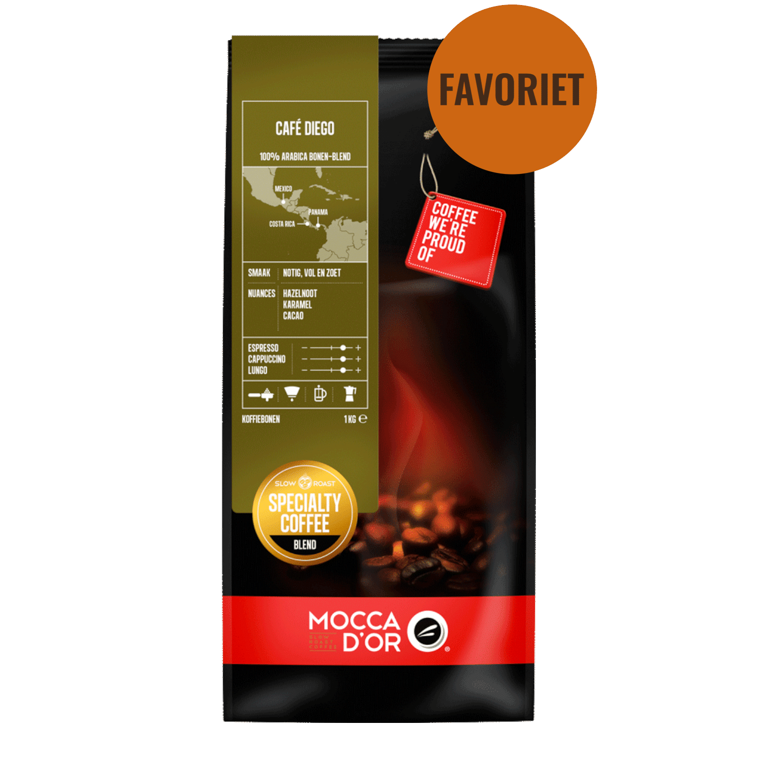 Met Café Diego haal je de smaak van Centraal-Amerikaanse koffie in huis. Ontdek de kenmerkende noten, de volle body en de zoete nuances van deze blend van Arabica bonen. Mocca d’Or zorgt ervoor dat elke kop Café Diego een bijzondere koffie-ervaring biedt die de passie en kwaliteit van de Centraal-Amerikaanse koffiecultuur weerspiegelt. Bestel nu bij Coffee & Tasty, de koffie speciaalzaak!