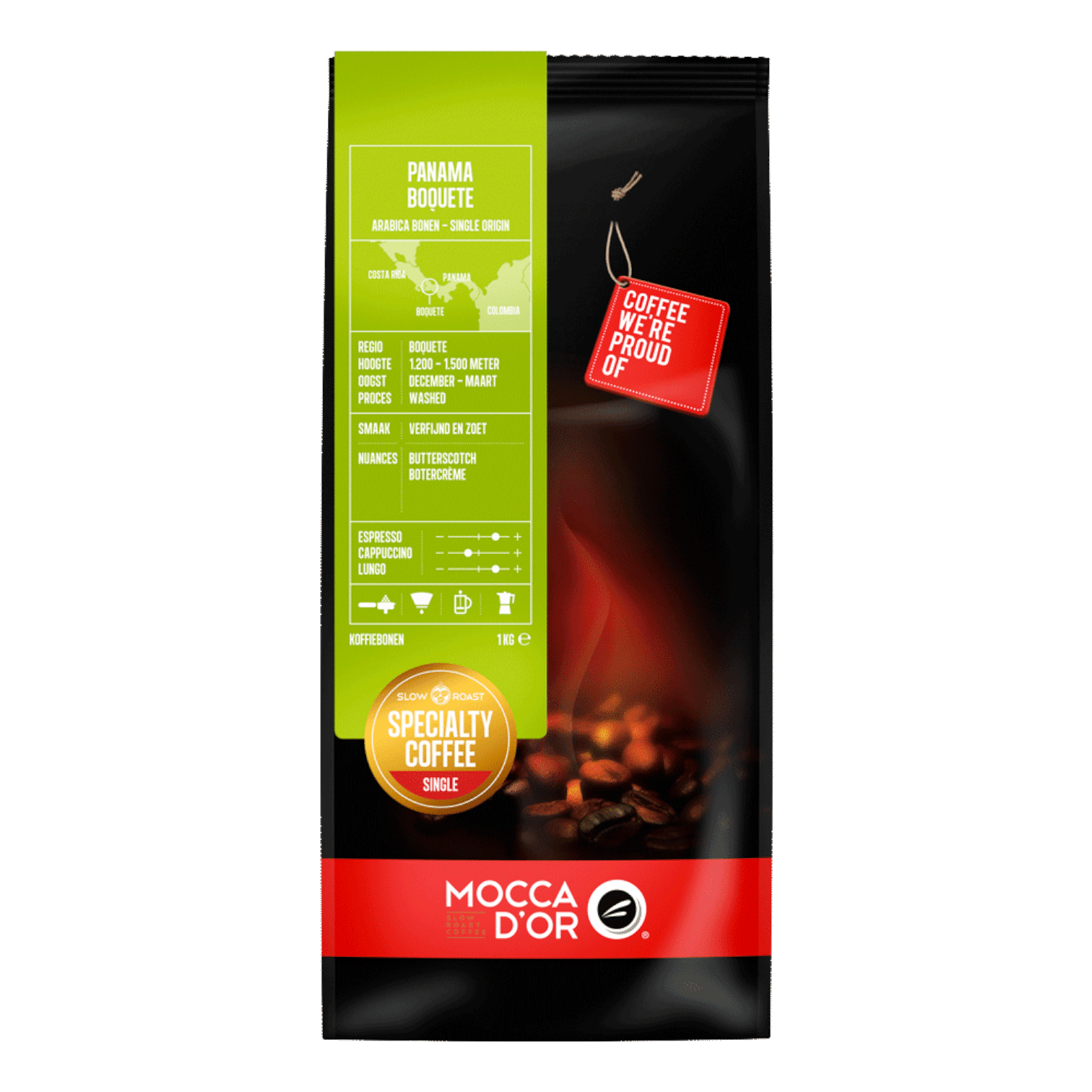 De Mocca d’Or Panama Boquete 1kg koffiebonen bieden een onvergetelijke en unieke koffie-ervaring. Als Single Origin koffie bestaande uit Arabica bonen verwennen ze je smaakpapillen met een delicate smaak en een verfijnde, zoete ondertoon.