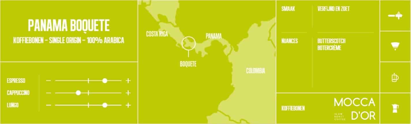 De Panama Boquete is Single Origin koffie bestaande uit 100% arabica bonen. De koffie heeft nuances van butterscotch & botercrème.