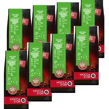 De Mocca d’Or Santos Brasil Cerrado koffiebonen zijn een uitzonderlijke koffiesoort afkomstig uit Zuid-Amerika. Gemaakt van 100% Arabica bonen, staan ze bekend om hun milde, zachte smaak met een lichte zoetheid. Ontdek het complexe karakter van deze koffie met subtiele smaaknuances van pinda, cacao en karamel.
