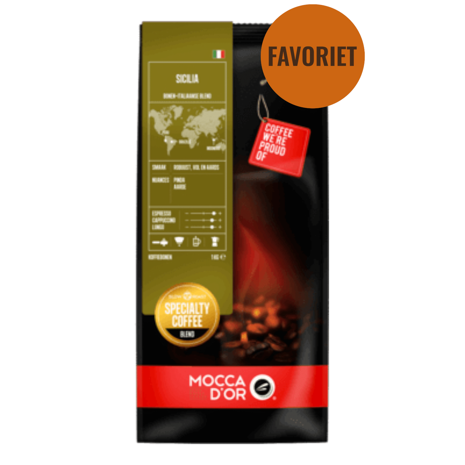 Duik diep in de Italiaanse koffiecultuur met de Mocca d’Or Sicilia 250gr koffiebonen. Deze melange is een viering van de rijke smaak die Italiaanse espresso’s zo begeerd maakt.
