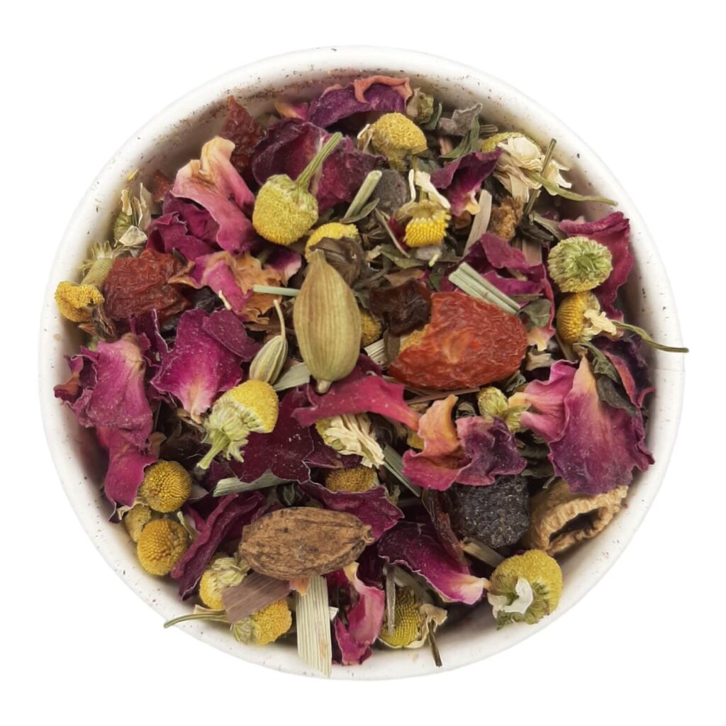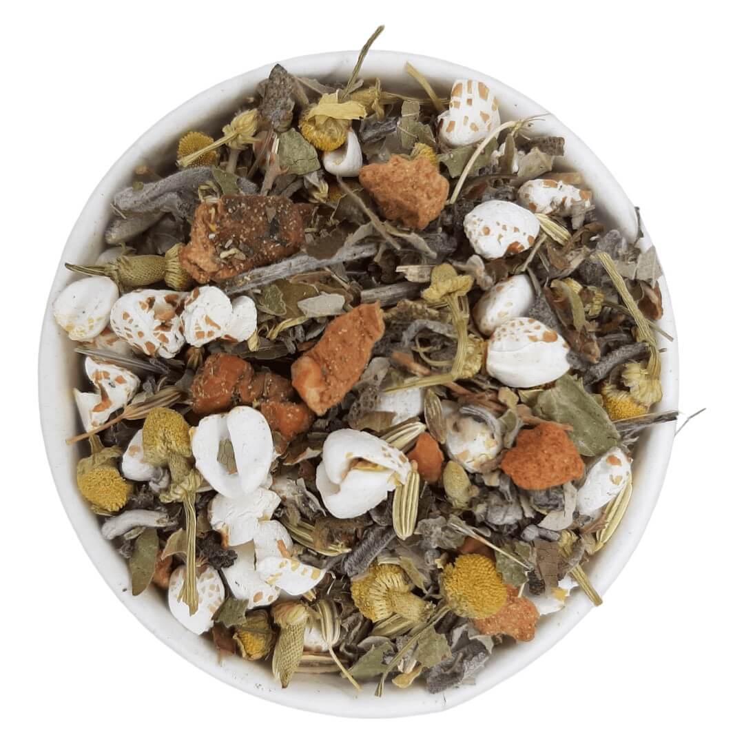 Om een ontspannende en rustgevende ervaring te creëren, bevat Sweet Honey Vanilla kruidenthee kamille en saliebladeren. Kamille staat bekend om zijn kalmerende eigenschappen en kan helpen bij het verminderen van stress. Saliebladeren voegen een vleugje aardse smaak toe en dragen bij aan het algehele gevoel van ontspanning.